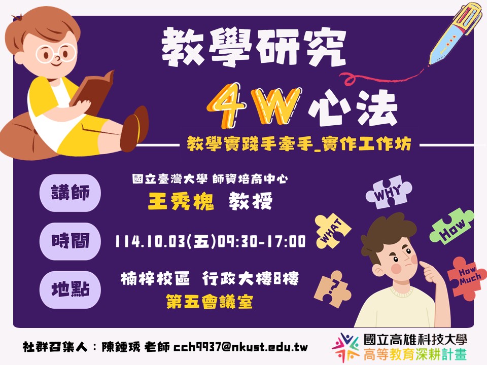 高科大高教深耕辦公室- 高雄市燕巢區大學路1號 行政大樓4F