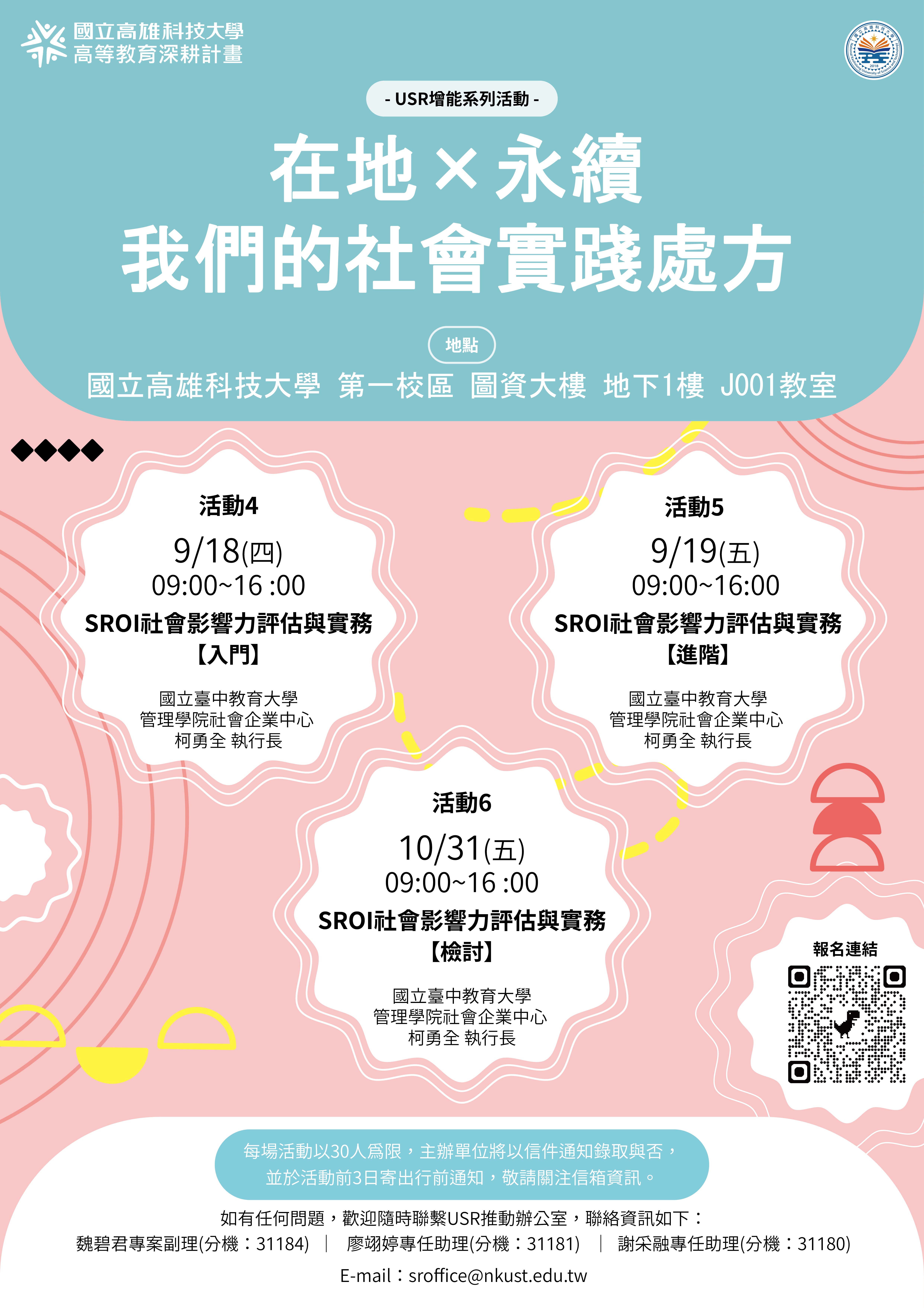 最新活動USR增能系列-【在地×永續×我們的社會實踐處方】SROI 工坊