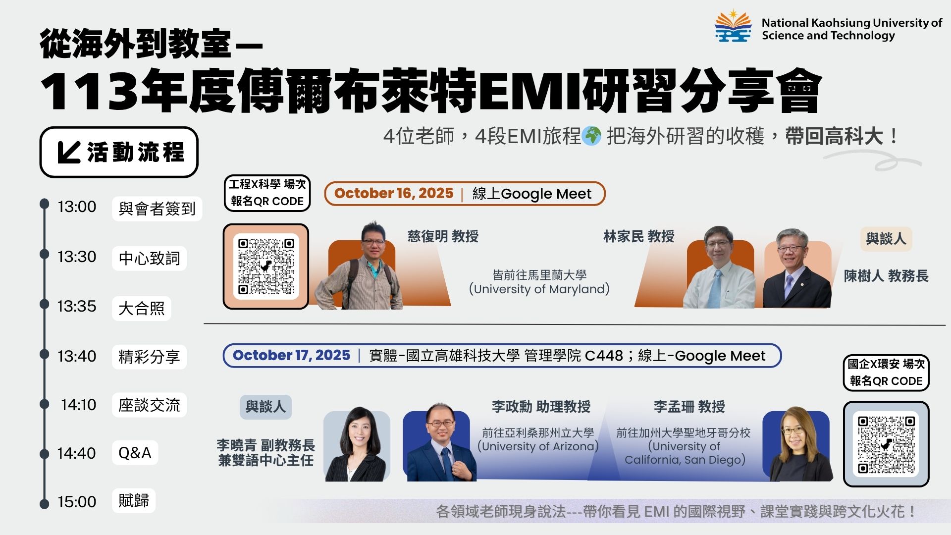 最新活動✦ 從海外到教室 — 113年度傅爾布萊特 EMI 研習分享會