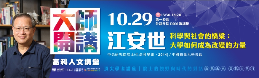 114-1 【高科人文講堂X大師開講】頂尖學者講座|江安世院士-科學與社會的橋梁:大學如何成為改變的力量