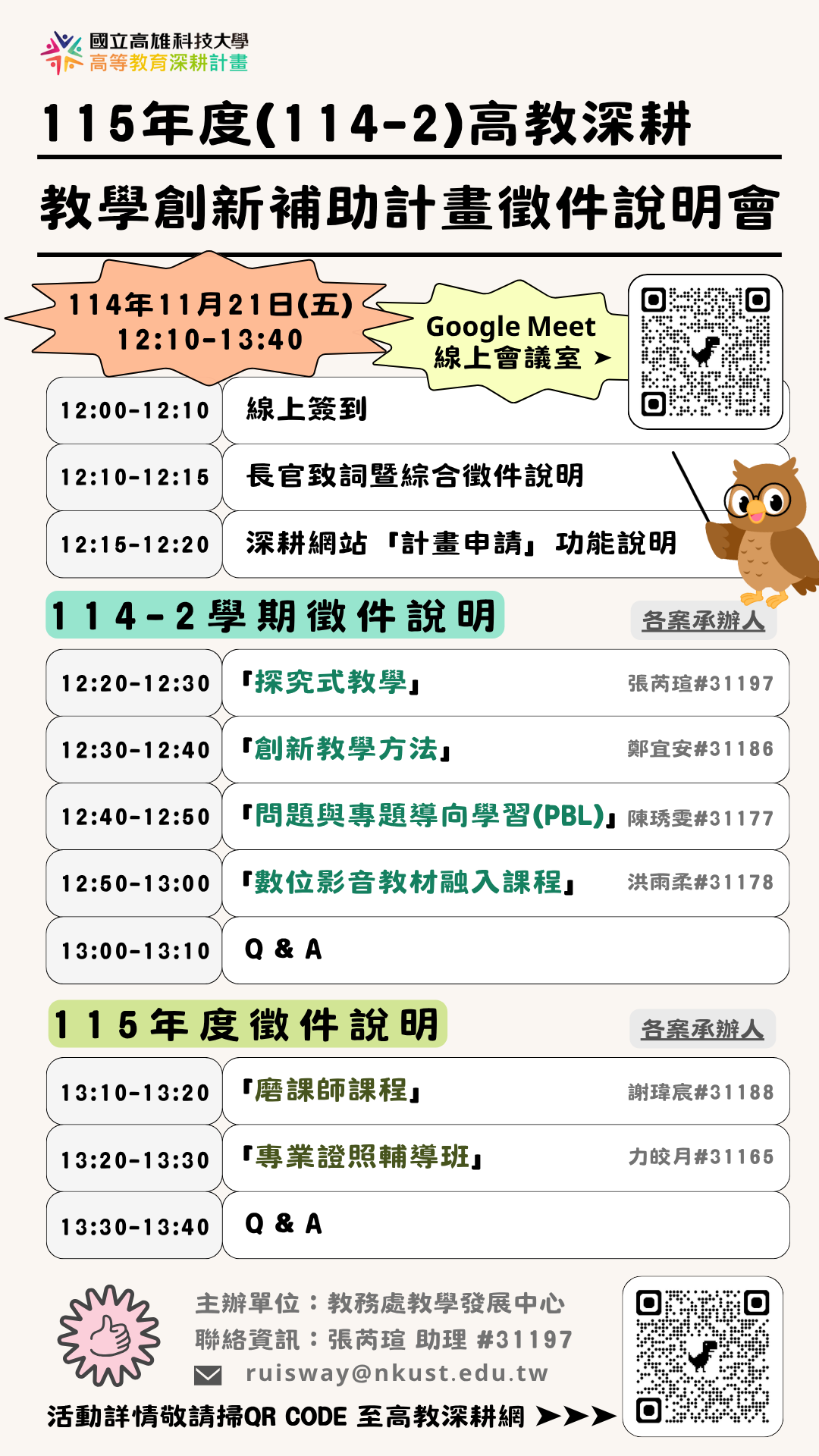 ✨115年度(114-2)高教深耕教學創新補助計畫徵件說明會✨