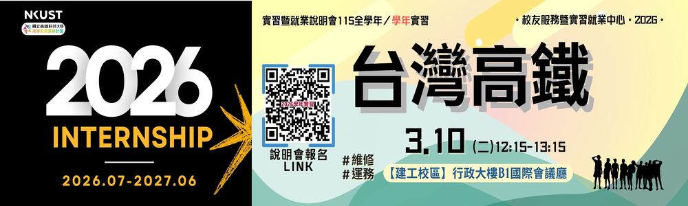 最新活動【實習說明會】03.10(二)【建工校區】台灣高鐵「2026學年實習」實習暨就業媒合說明會