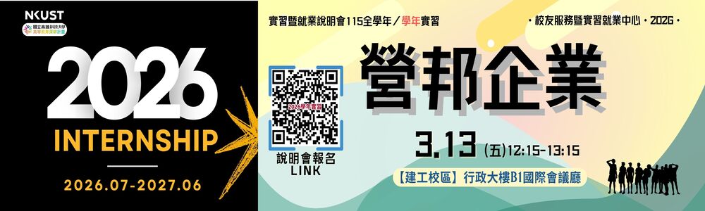 本案承辦人【實習】:董小姐(分機31641,hctung1808@nkust.edu.tw)