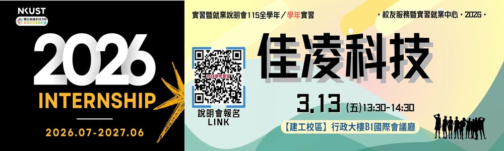 最新活動【實習說明會】03.13(五)下午【建工校區】佳凌科技「2026學年實習」實習暨就業媒合說明會