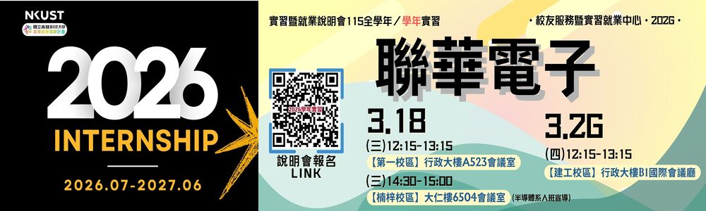 最新活動【實習說明會】03.18(三)【第一校區】聯華電子「2026學年實習」實習暨就業媒合說明會