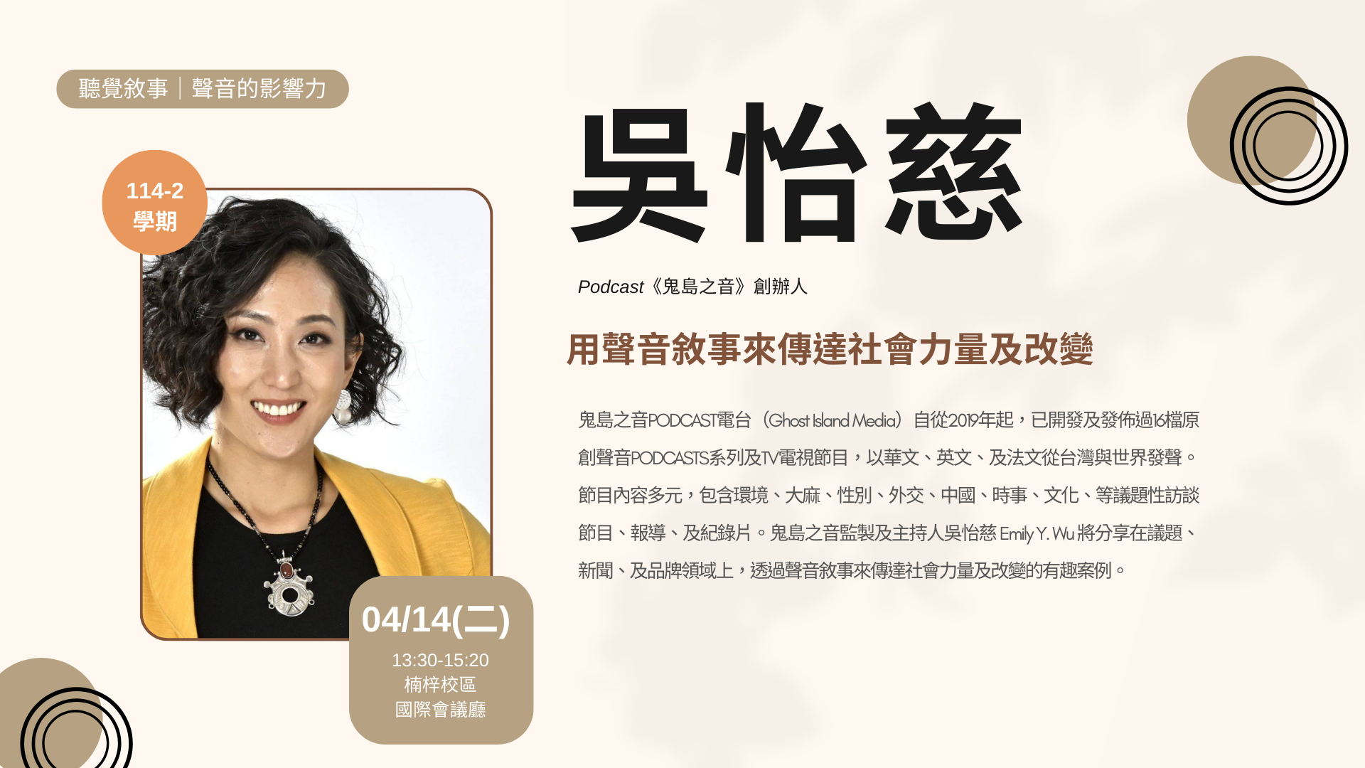 114-2 【高科人文講堂X大師開講】吳怡慈 - 用聲音敘事來傳達社會力量及改變