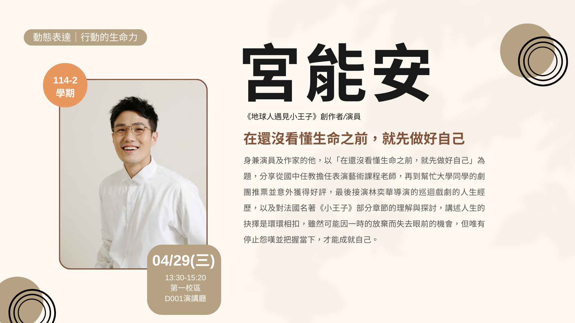 114-2 【高科人文講堂X大師開講】宮能安 - 在還沒看懂生命之前,就先做好自己