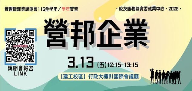 看更多第二期計畫A 2026-03-06【實習說明會】03.13(五)【建工校區】營邦企業「2026學年實習」實習暨就業媒合說明會 -