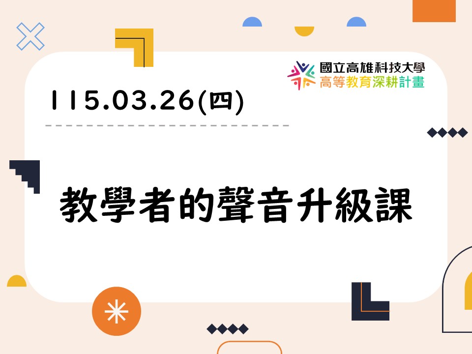 看更多第二期計畫A 2026-03-11【活動通知】教學者的聲音升級課工作坊開始報名囉! -