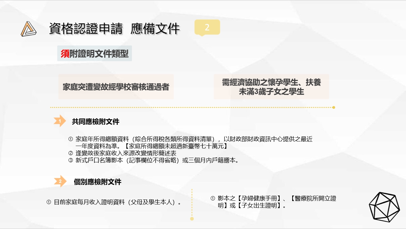 二、有關115年度學務處高教深耕計畫-附錄1〔經濟不利學生〕資格認證申請說明如下: