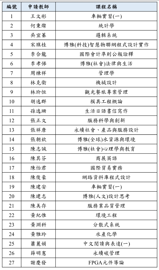 公告事項--【公告】114-1學期「問題與專題導向學習(PBL)課程」核定補助名單