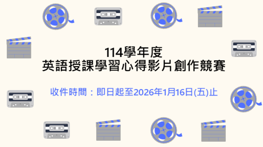 看更多第二期計畫A 2025-11-03114學年度英語授課心得影片創作競賽開放報名!! -