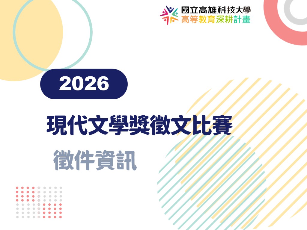 看更多第二期計畫A 2026-03-06活動通知-號外號外尋找高科大文青哥、徵求高科大張愛玲! 2026高科大現代文學獎徵文比賽開跑啦~歡迎同學踴躍投稿✨ -