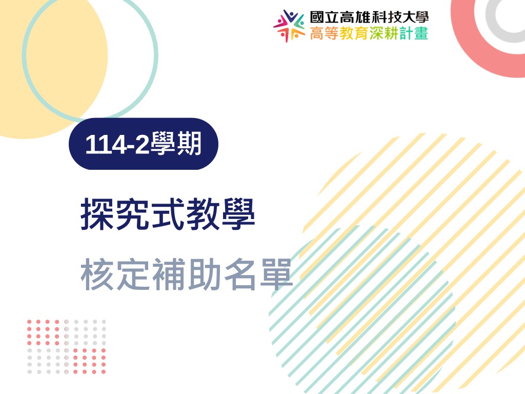 看更多第二期計畫A 2026-03-02公告事項--【公告】114-2學期「探究式教學」核定補助名單 -