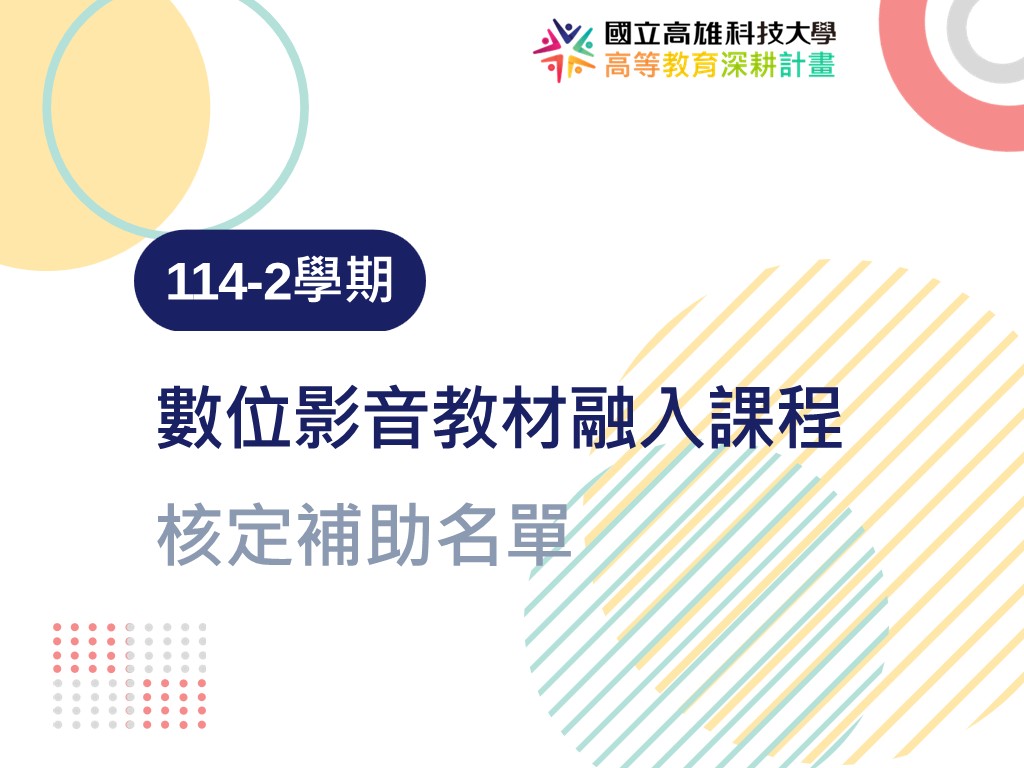 看更多第二期計畫A 2026-03-02公告事項--【公告】114-2學期「數位影音教材融入課程補助」核定補助名單